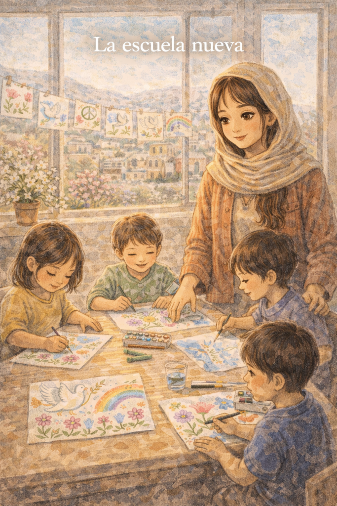 Amal les pidió a los niños que dibujaran “el país que quieren”.