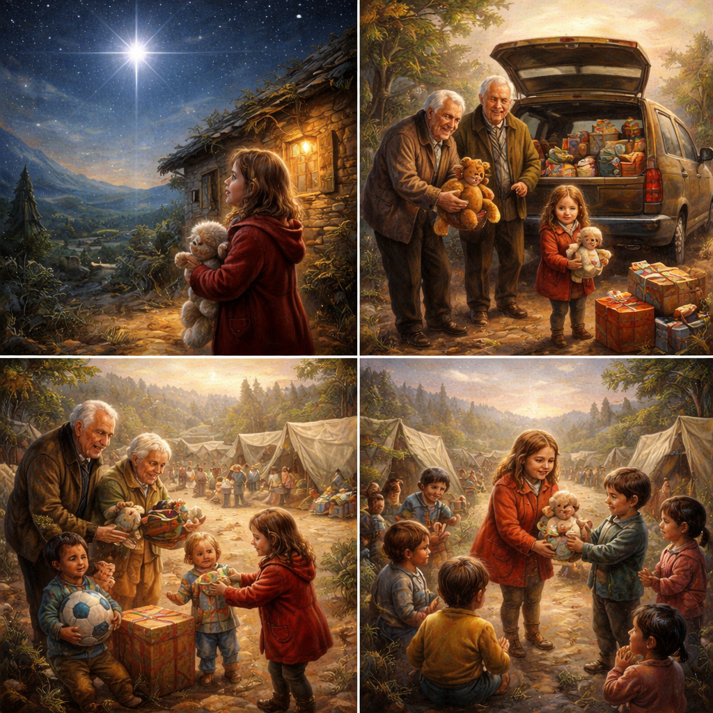 —Haremos un viaje —dijo el abuelo—. Iremos a un campo de refugiados y repartiremos estos juguetes. La estrella nos ha marcado el camino del corazón.