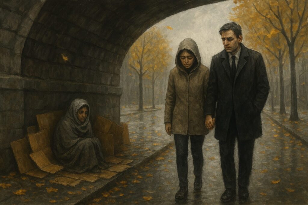 Bajo un puente, en un rincón protegido del viento, pero no de la humedad, una pequeña figura se arrebujaba entre varios cartones desvencijados. Era solo un bulto más, una sombra inadvertida para los transeúntes que, con prisas y paraguas, huían del inclemente clima.