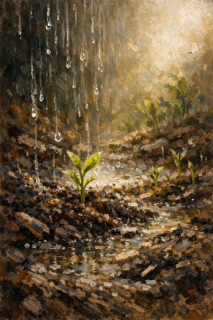 y la tierra del alma —agrietada, cansada—