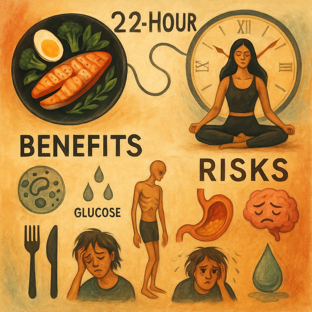 Aunque el ayuno de 22 horas puede ofrecer beneficios en pérdida de peso y autofagia, no es sostenible ni seguro para la mayoría de las personas a largo plazo. Existen enfoques menos extremos (como el 16:8) con menor riesgo de efectos adversos. Siempre prioriza tu salud metabólica y psicológica sobre la rapidez de los resultados.