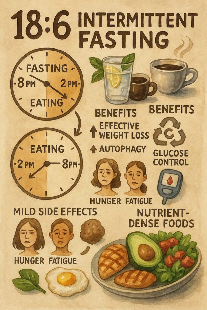 El ayuno intermitente de 18 horas (conocido como protocolo 18:6) implica ayunar durante 18 horas y concentrar la alimentación en una ventana de 6 horas. Es una opción más sostenible y menos extrema que el de 22 horas, pero sigue siendo riguroso. Aquí los detalles: