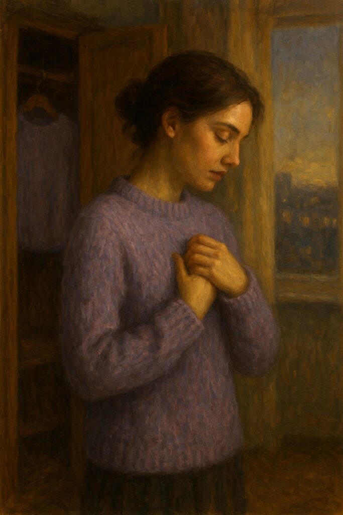 Se lo puso. Las mangas le quedaban cortas, la lana le hacía cosquillas en la muñeca. Cerró los ojos e inhaló profundamente. El rastro del perfume, un olor característico que reconocía con los ojos cerrados a tiempo detenido. Pero en su piel, el suéter comenzó a generar un calor que no era físico. Era el eco de un abrazo.