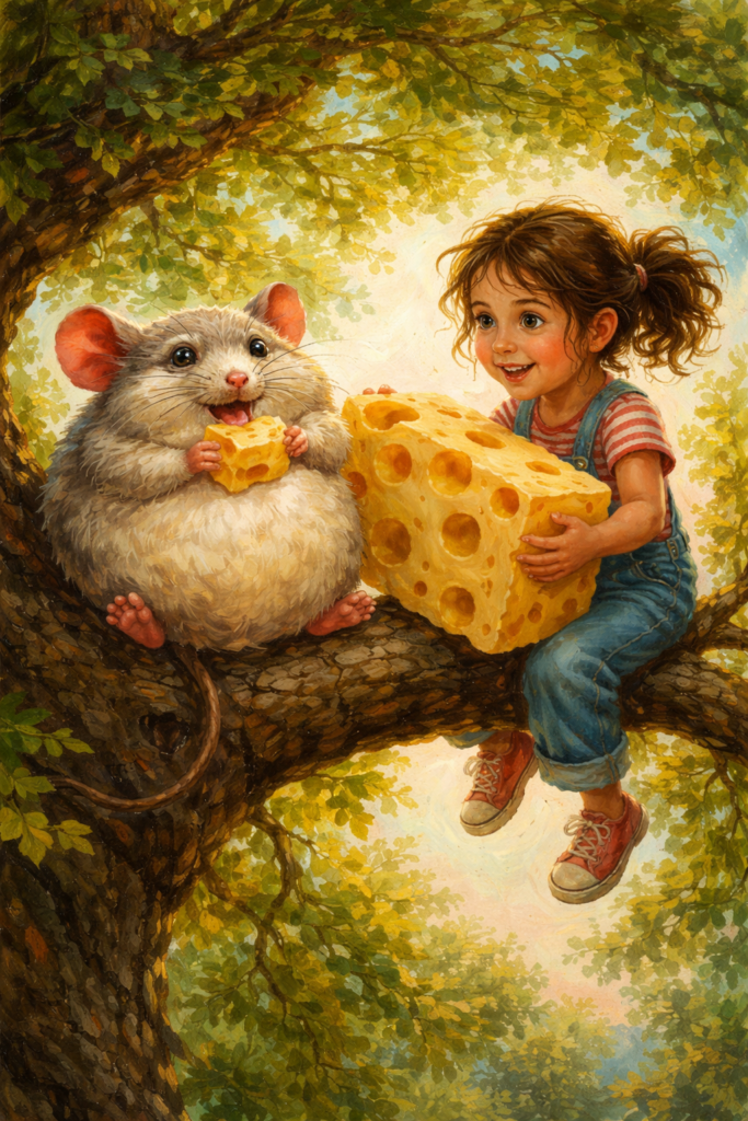 la de una niña, un ratón y un queso gigante con mil agujeros. 🧀🐭🌳✨